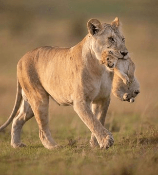 This photo shows another version of the story, a mother lion simply carrying her cub around. This photo brings a sense of relief after viewing the first version.